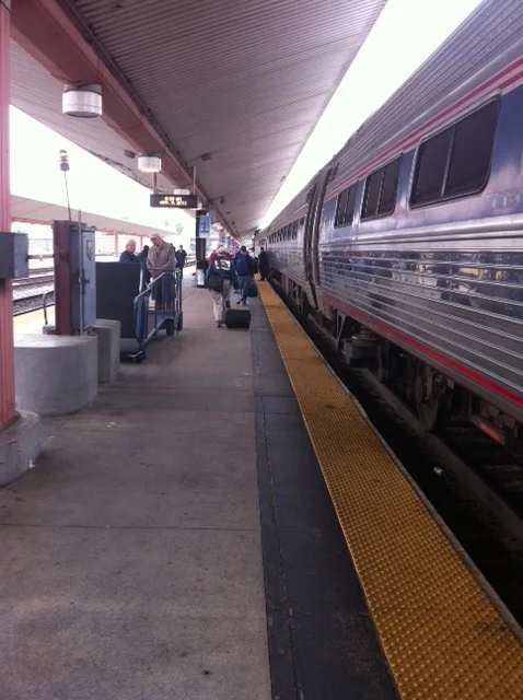 We are on board a special excursion train for the 75th Anniversary of the Pacific Railroad Society. The train is leaving Los Angeles heading to Bakersfield. Operated by Amtrak, this is the first passenger to travel the world famous Tehachapi Loop since 1979.